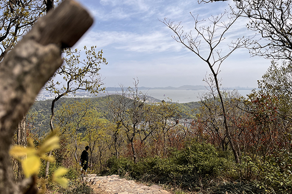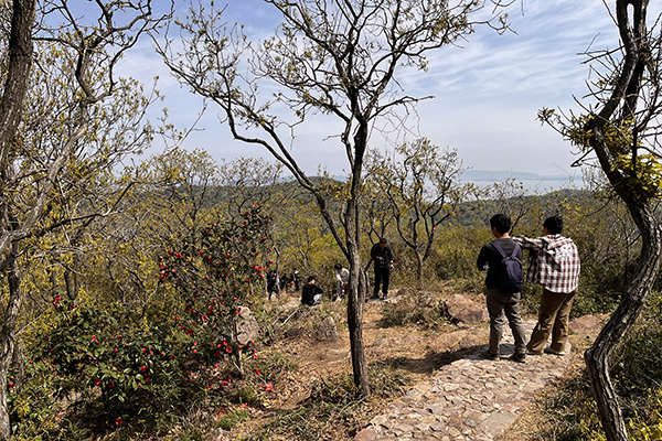 及至登頂,豁然開朗。太湖如鏡,遠山含黛,近水含煙,春風拂面,先前的疲憊竟都化作了此刻的暢快。同事們紛紛舉起手機,要將這美景定格。我想,這大概就是堅持的饋贈——若非親歷攀登的辛苦,又怎能懂得山頂風光的珍貴?