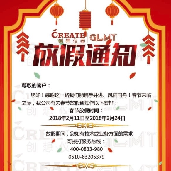 創(chuàng)想儀器2018年春節(jié)放假通知